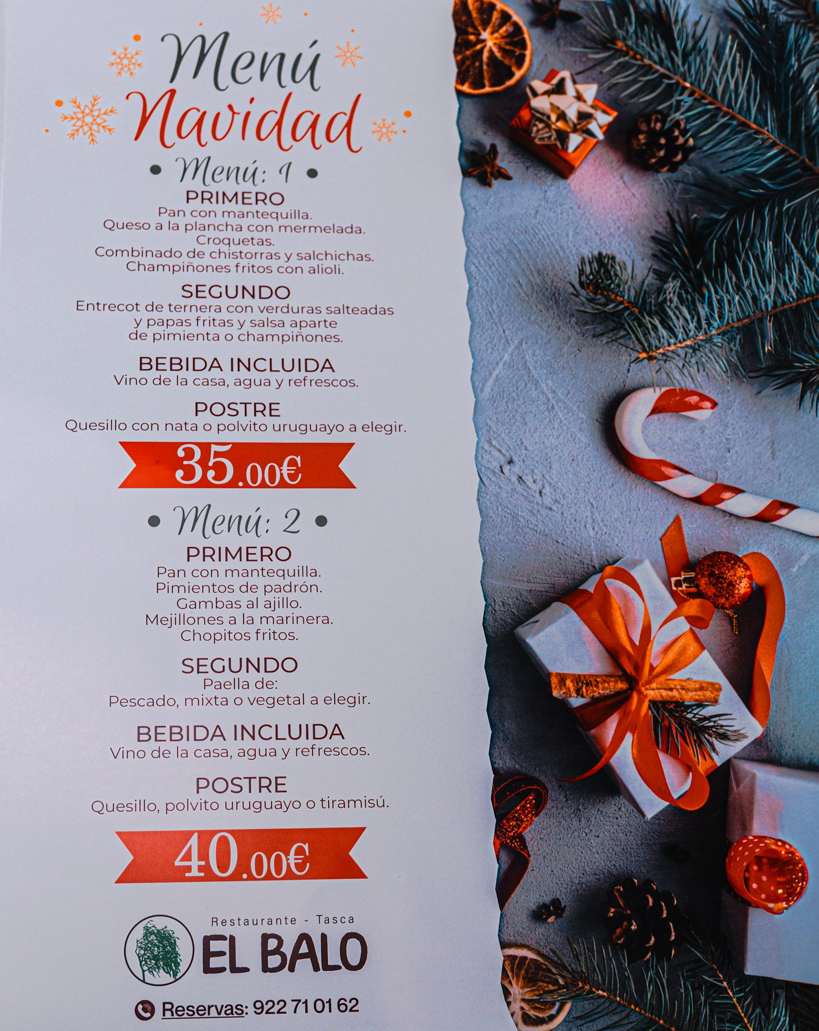 🎅✨ Esta Navidad se celebra como se merece. ✨🎅 Si estás buscando el lugar perfecto para tu cena de empresa, en Restaurante Tasca El Baló lo tenemos todo preparado para que disfrutes junto a tu equipo de una velada inolvidable: buena comida, ambiente acogedor y el mejor espíritu navideño. 🍽️ Dos menús especiales para elegir: ✔️ Entrantes variados ✔️ Platos principales para todos los gustos ✔️ Postre casero 🥂 Bebidas incluidas 💰 Desde 35€ por persona 📍 Plazas limitadas – Reserva con tiempo Haz que este fin de año tu equipo celebre logros, risas y buenos momentos alrededor de una mesa con sabor a tradición. 📲 Reservas: 922 71 01 62 🎁 Esta Navidad… se disfruta en El Baló.